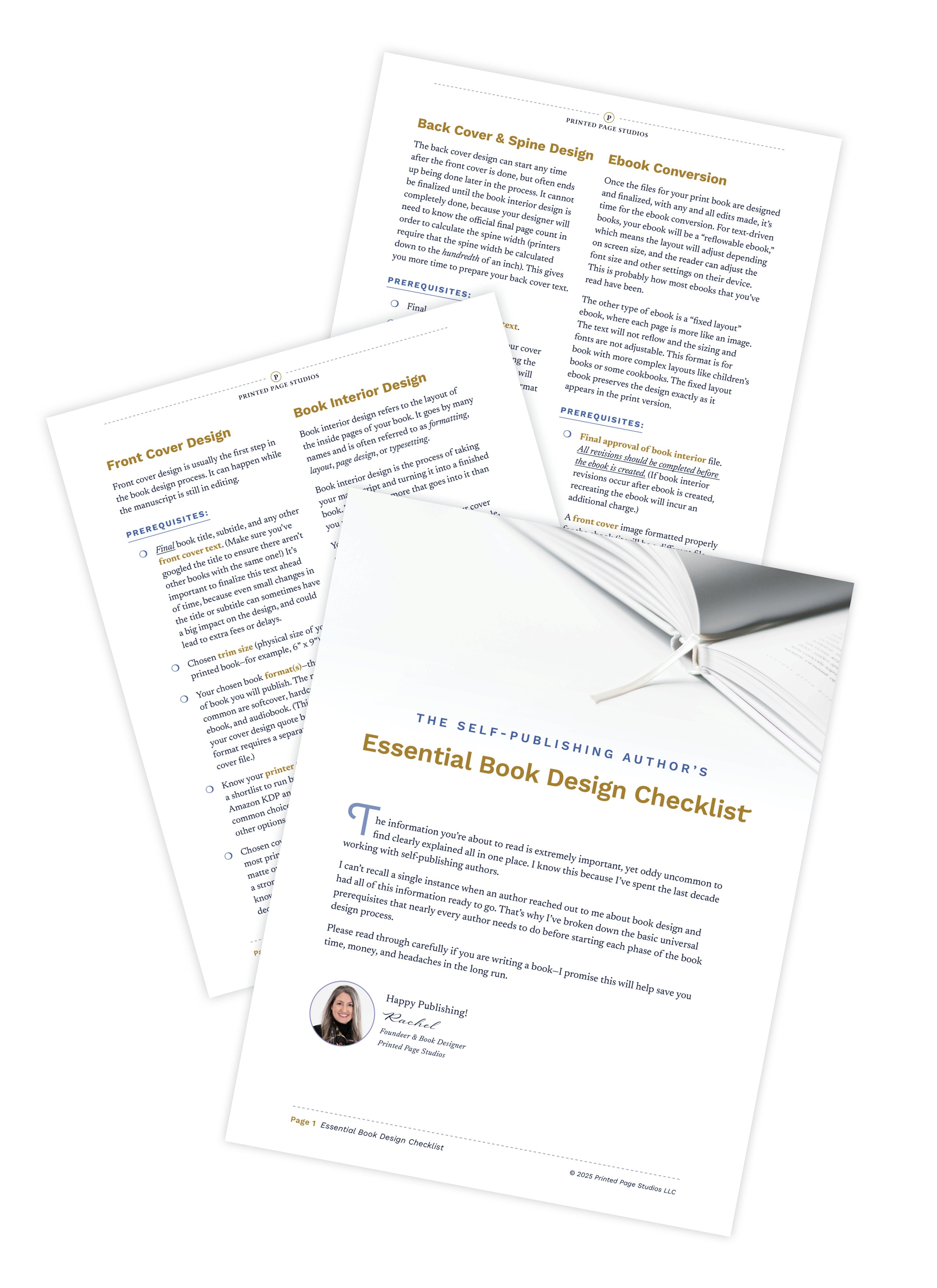 Hey, I'm Rachel. I'm a book cover and interior designer with a passion for creating the highest quality self-published books. I founded Printed Page Studios to provide top quality, bespoke cover and interior design for purpose-driven nonfiction authors. I also run the Book Designer Collective, a private online community just for book designers.